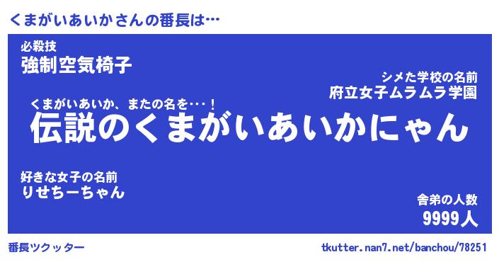 | 伝説のあだ名 | 『伝説の竜騎士くまがいあいか』 |