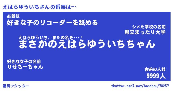| 伝説のあだ名 | 『伝説の竜騎士えはらゆういち』 |