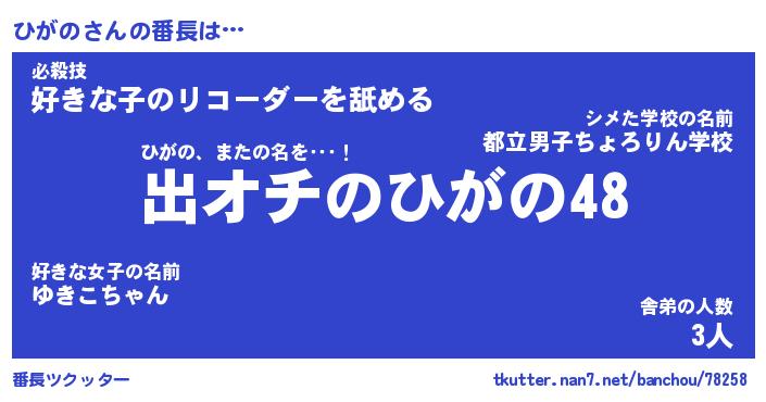 | ヒーロー風カッコイイあだ名 | 『スーパーヒガノ』『ウルトラひがのマン』 |