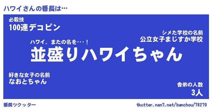 | ファンタジー風あだ名 | 『ハワフェル』『エターナルハワイー』 |
