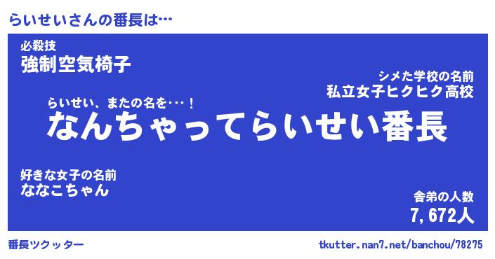 | 肩書あだ名 | 『らいせい店長』『らいせい大統領』 |