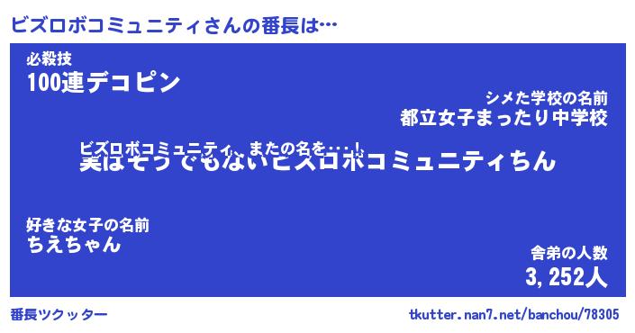 | 意味不明あだ名 | 『ペロリンビズロボコミュニティ』 |