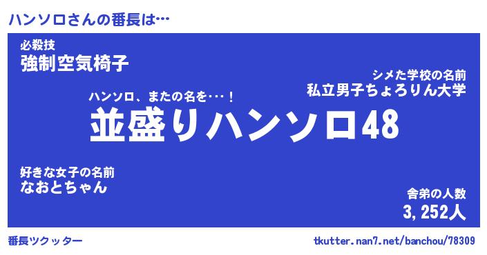 | 意味不明あだ名 | 『ペロリンハンソロ』『永久保存ハンソロ』 |