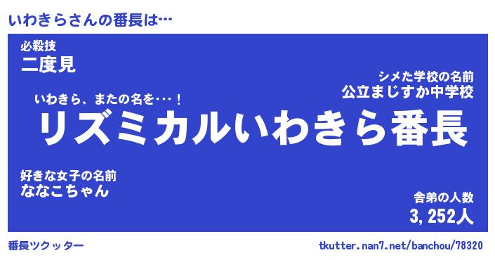 | 意味不明あだ名 | 『ペロリンいわきら』『永久保存いわきら』 |