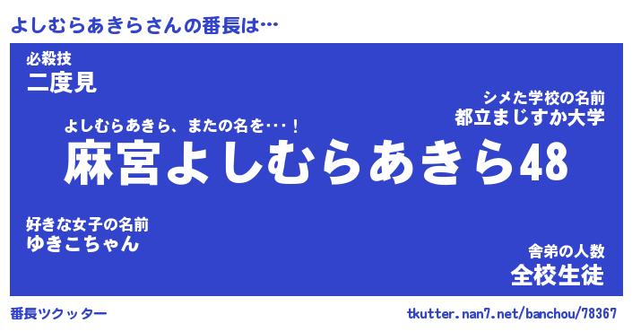 | 肩書あだ名 | 『よしむらあきら御曹司』 |