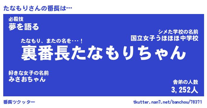 | ポケモン風あだ名 | 『タナチュウ』『タナモダネ』 |