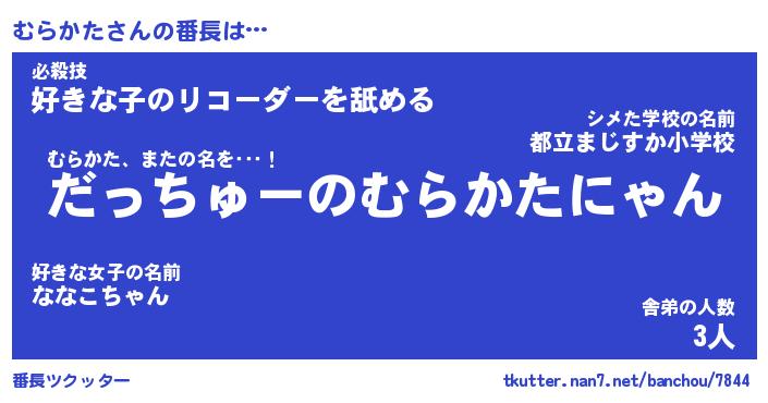 | ヘコむあだ名 | 『むらにー』『なまこ酢』『むらを』 |