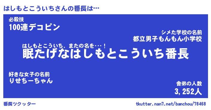 | 伝説のあだ名 | 『封印されしスナイパーはしもとこういち』 |