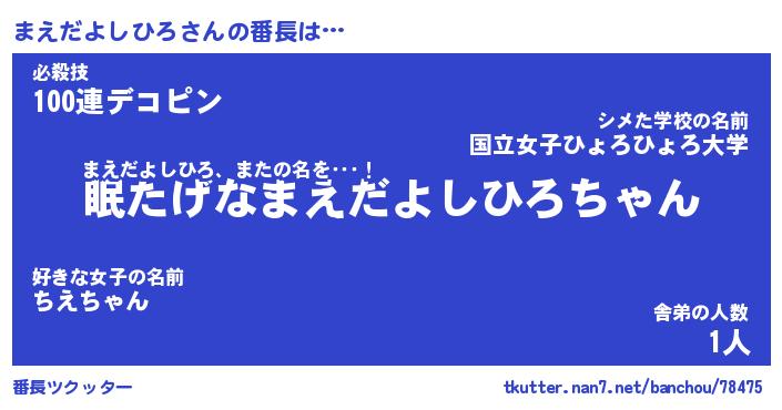 | ヘコむあだ名 | 『まえにゅー』『つくし』『まえっぺ』 |