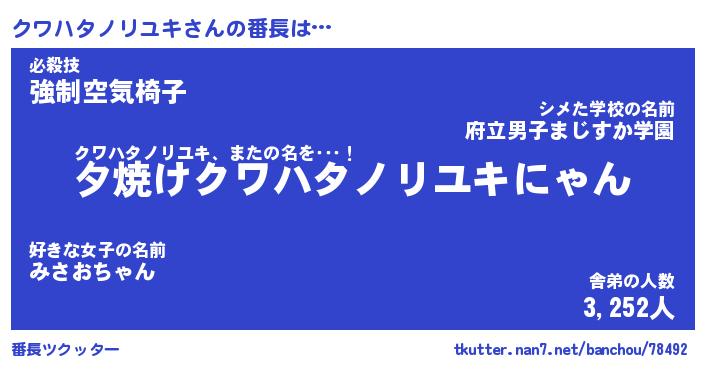 | ヒーロー風カッコイイあだ名 | 『スーパークワハタノリユキ』 |