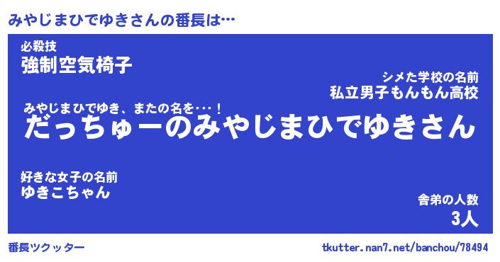 | 肩書あだ名 | 『みやじまひでゆき御曹司』 |