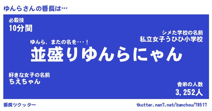 | 意味不明あだ名 | 『ペロリンゆんら』『ゆんらフォーエバー』 |
