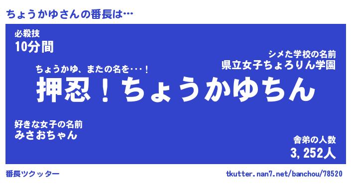 | ヒーロー風カッコイイあだ名 | 『スーパーチョウカユ』『幻影騎士チョ』 |