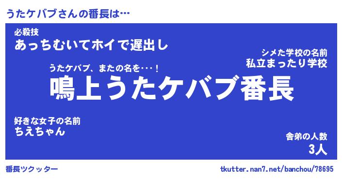 | 伝説のあだ名 | 『封印されしスナイパーうたケバブ』 |