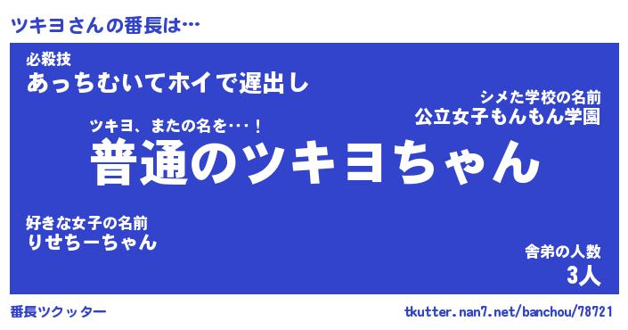| ファンタジー風あだ名 | 『ツキフェル』『エターナルツキヨー』 |