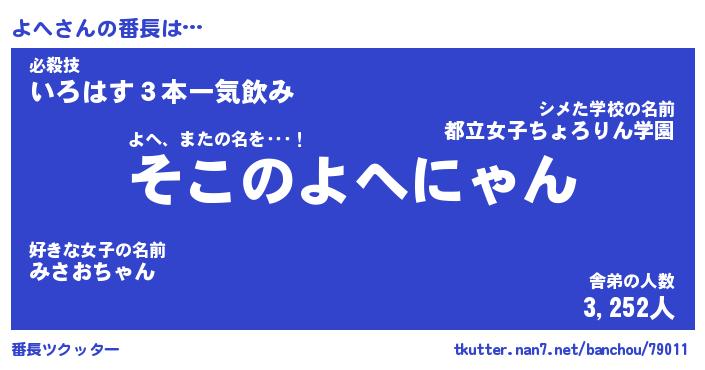 | ヘコむあだ名 | 『よへにー』『なまこ酢』『よへっぺ』 |
