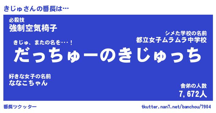 | ヒーロー風カッコイイあだ名 | 『スーパーキジュ』『ウルトラきじゅマン』 |