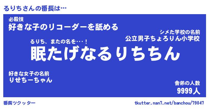 | ヒーロー風カッコイイあだ名 | 『スーパールリチ』『ウルトラるりちマン』 |