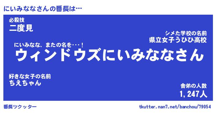 | ファンタジー風あだ名 | 『ニイフェル』『エターナルニイミナナー』 |