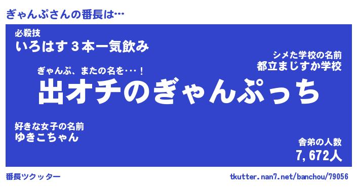 | 男性向けラノベタイトル風あだ名 | 『ぎゃんぷの憂鬱』 |