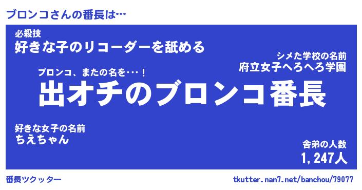 | 意味不明あだ名 | 『ペロリンブロンコ』『永久保存ブロンコ』 |