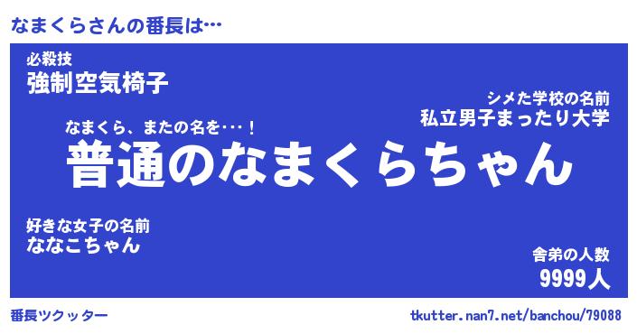 | ヒーロー風カッコイイあだ名 | 『スーパーナマクラ』『暗黒騎士ナマ』 |