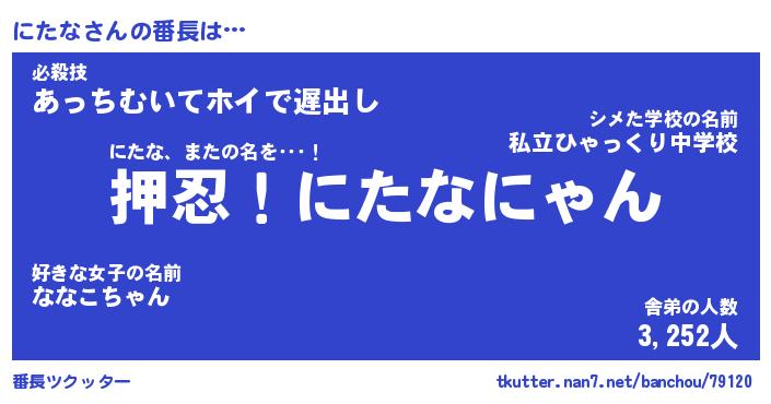 | 意味不明あだ名 | 『ペロリンにたな』『にたなフォーエバー』 |