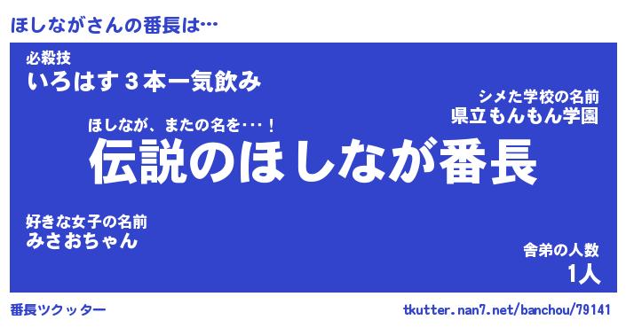 | ヒーロー風カッコイイあだ名 | 『スーパーホシナガ』『銀牙騎士ホシ』 |