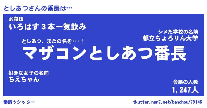 | 意味不明あだ名 | 『ペロリンとしあつ』『永久保存としあつ』 |