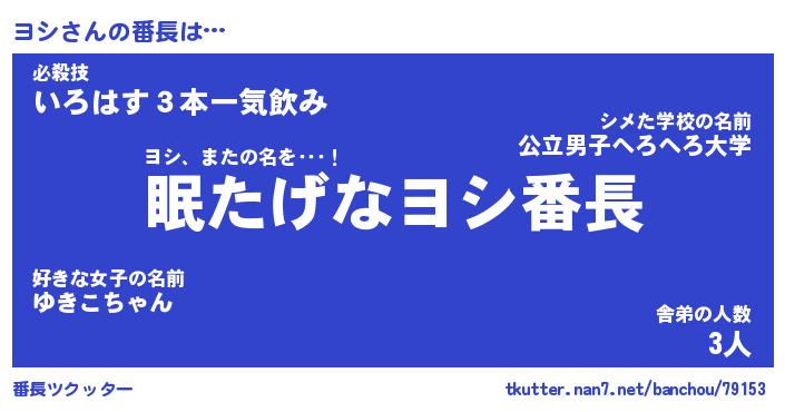 | ヘコむあだ名 | 『ヨシにー』『牛乳』『ヨシお』 |