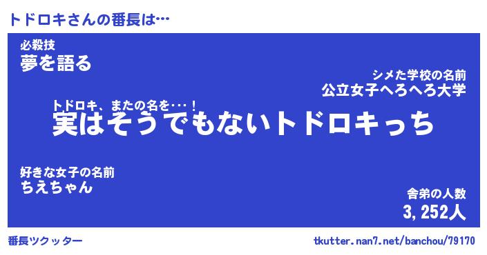 | ヒーロー風カッコイイあだ名 | 『スーパートドロキ』『銀牙騎士トド』 |