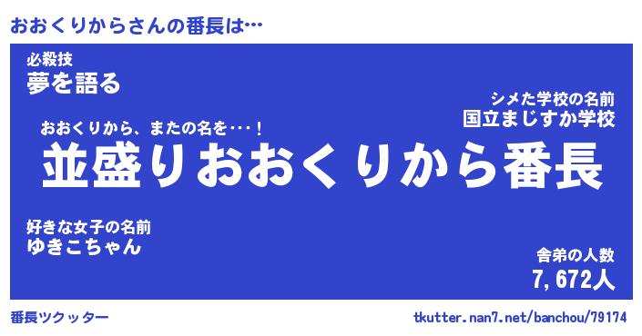 | 伝説のあだ名 | 『不死鳥のスナイパーおおくりから』 |