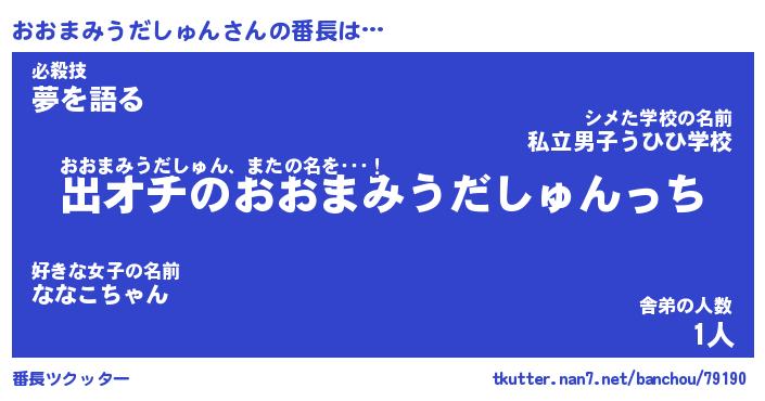 | 肩書あだ名 | 『おおまみうだしゅん御曹司』 |