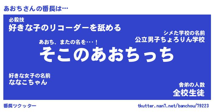 | 意味不明あだ名 | 『ペロリンあおち』『あおちフォーエバー』 |
