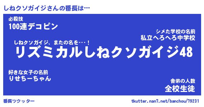 | 伝説のあだ名 | 『伝説のスナイパーしねクソガイジ』 |