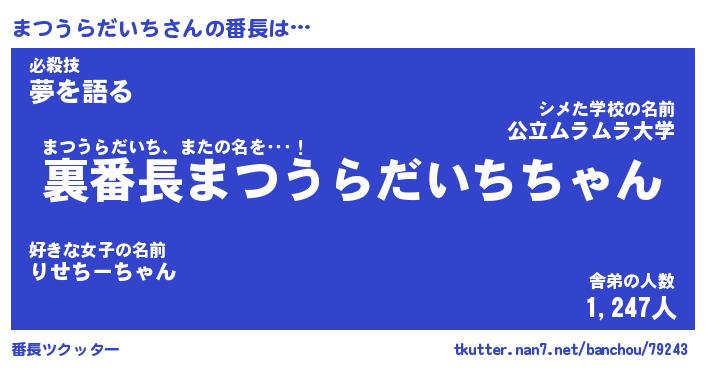 | 伝説のあだ名 | 『不死鳥のスナイパーまつうらだいち』 |