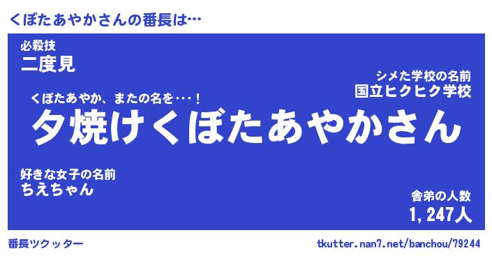 | 伝説のあだ名 | 『封印されし竜騎士くぼたあやか』 |