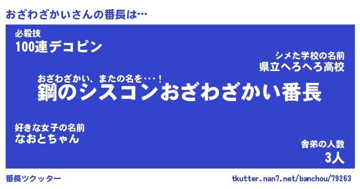 | ヘコむあだ名 | 『おざにー』『つくし』『おざっ子』 |