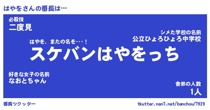 | ポケモン風あだ名 | 『ハヤチュウ』『ハヤヲダネ』 |