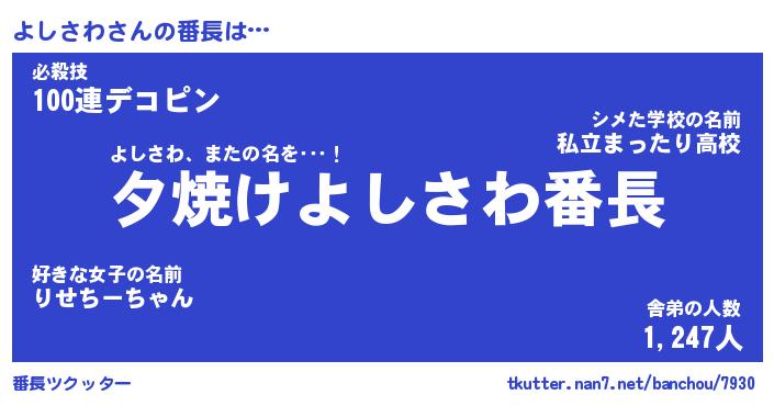 | 意味不明あだ名 | 『ペロリンよしさわ』『永久保存よしさわ』 |