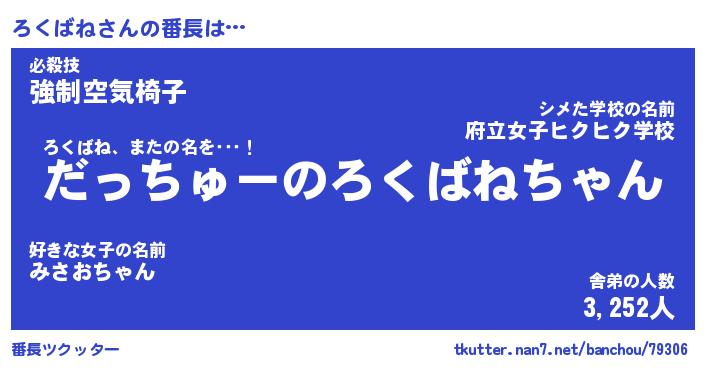 | 伝説のあだ名 | 『伝説のスナイパーろくばね』 |