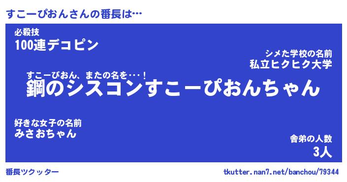 | ピコ太郎風あだ名 | 『スコ太郎』『ピス一郎』『スコ六郎』 |
