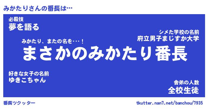 | 肩書あだ名 | 『みかたりCEO』『みかたり総理大臣』 |