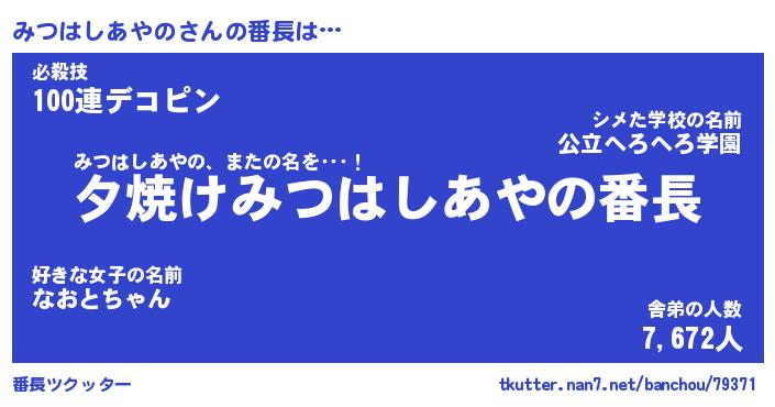 | 伝説のあだ名 | 『封印されしスナイパーみつはしあやの』 |