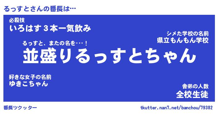| 意味不明あだ名 | 『ペロリンるっすと』『永久保存るっすと』 |