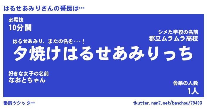 | ヘコむあだ名 | 『はるっふぃ~』『なまこ酢』 |