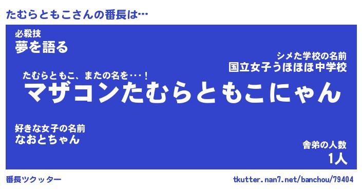 | ヒーロー風カッコイイあだ名 | 『スーパータムラトモコ』『銀牙騎士タム』 |
