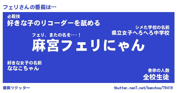 | 意味不明あだ名 | 『ペロリンフェリ』『フェリフォーエバー』 |