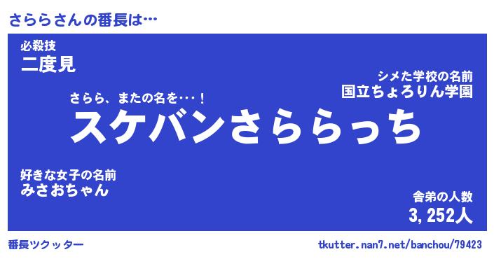 | 意味不明あだ名 | 『ペロリンさらら』『さららフォーエバー』 |