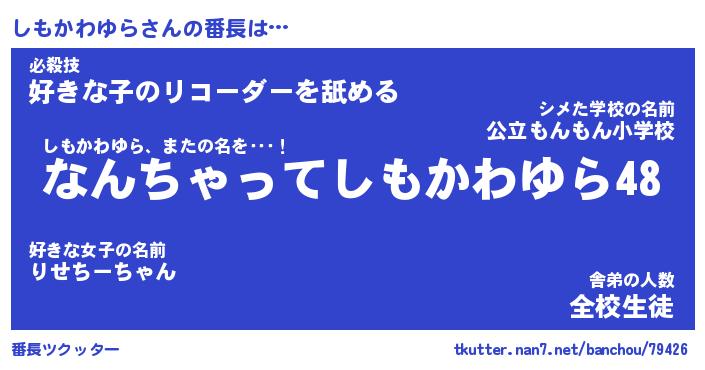 | 肩書あだ名 | 『しもかわゆら店長』『しもかわゆら校長』 |